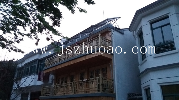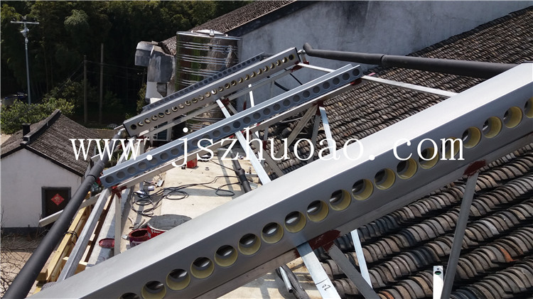 工程詳情:1噸保溫水箱,2組太陽能集熱器,6KW電加熱輔助加熱