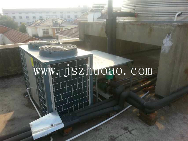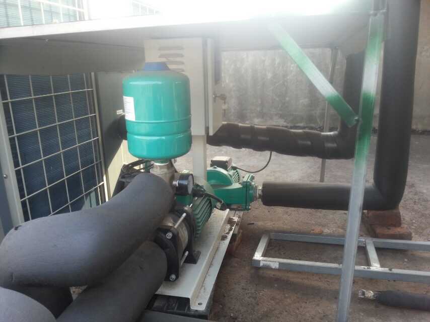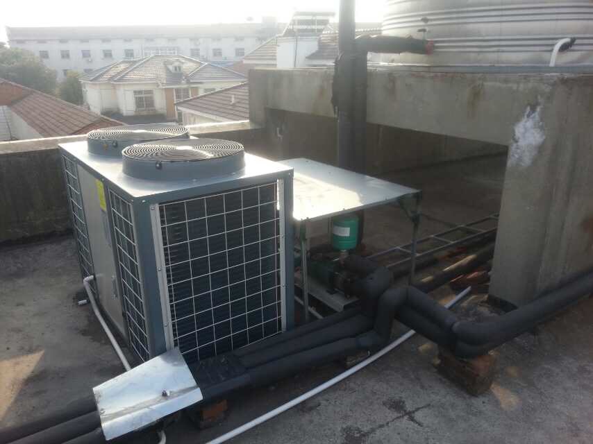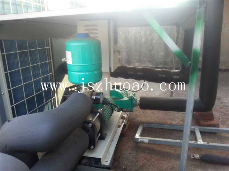 工程介紹:1臺(tái)10匹空氣能,1臺(tái)5噸不銹鋼保溫水箱,24小時(shí)恒溫恒壓提供熱水。
